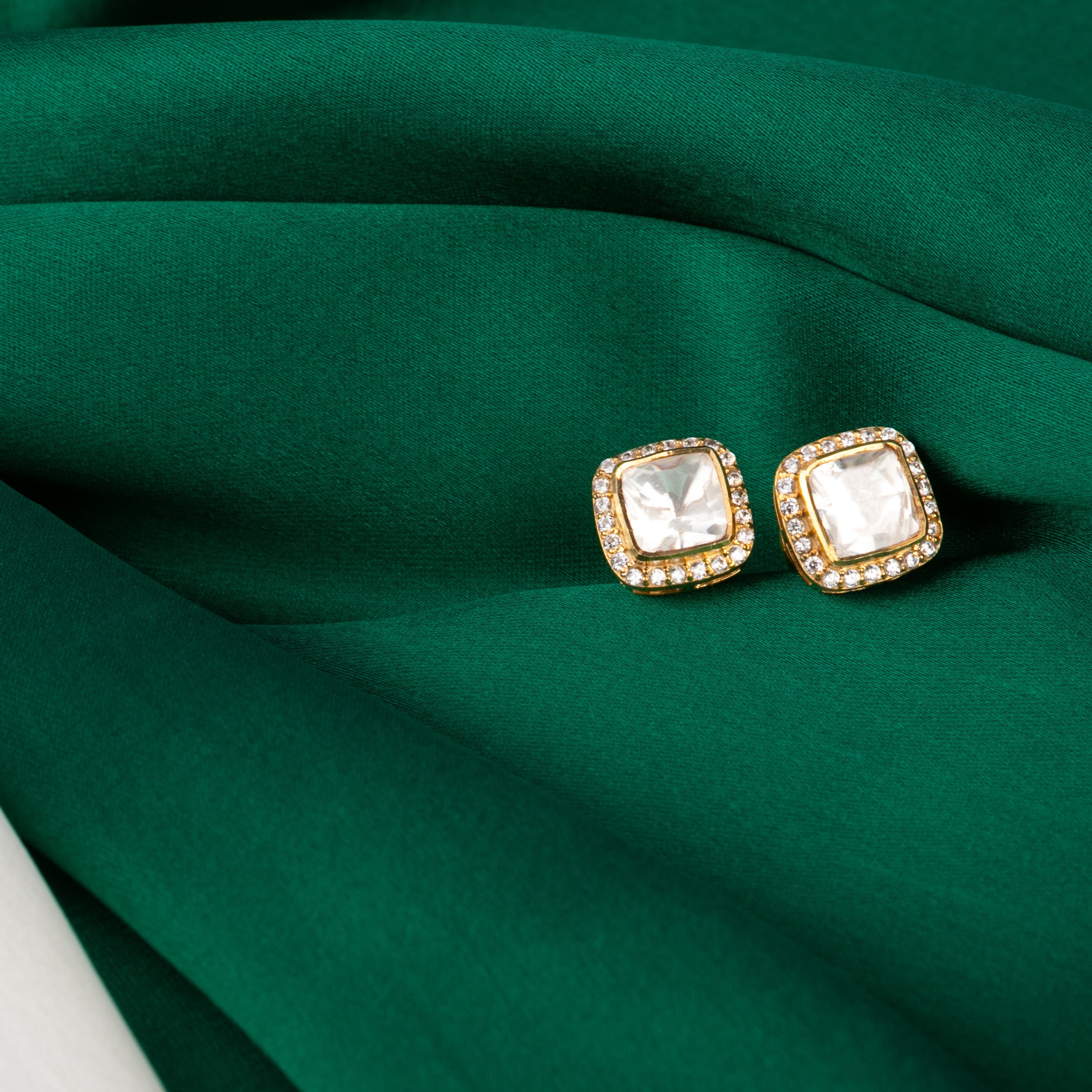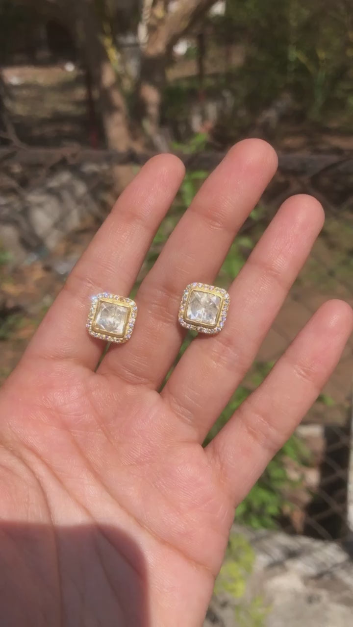 925 Silver Moissanite Polki Square Earrings