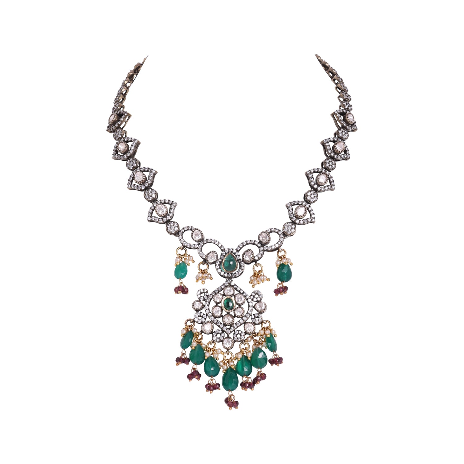 925 Silver Moissanite Polki Urmi Victorian Necklace