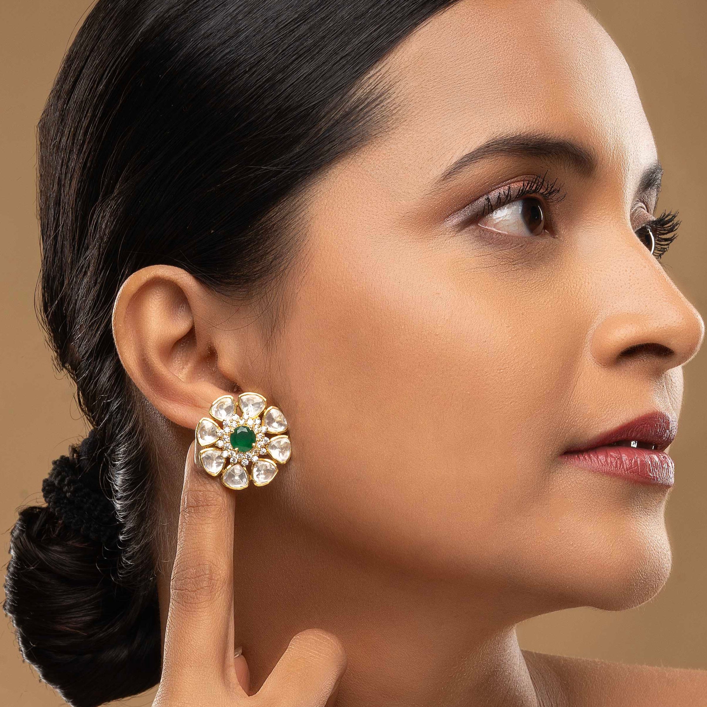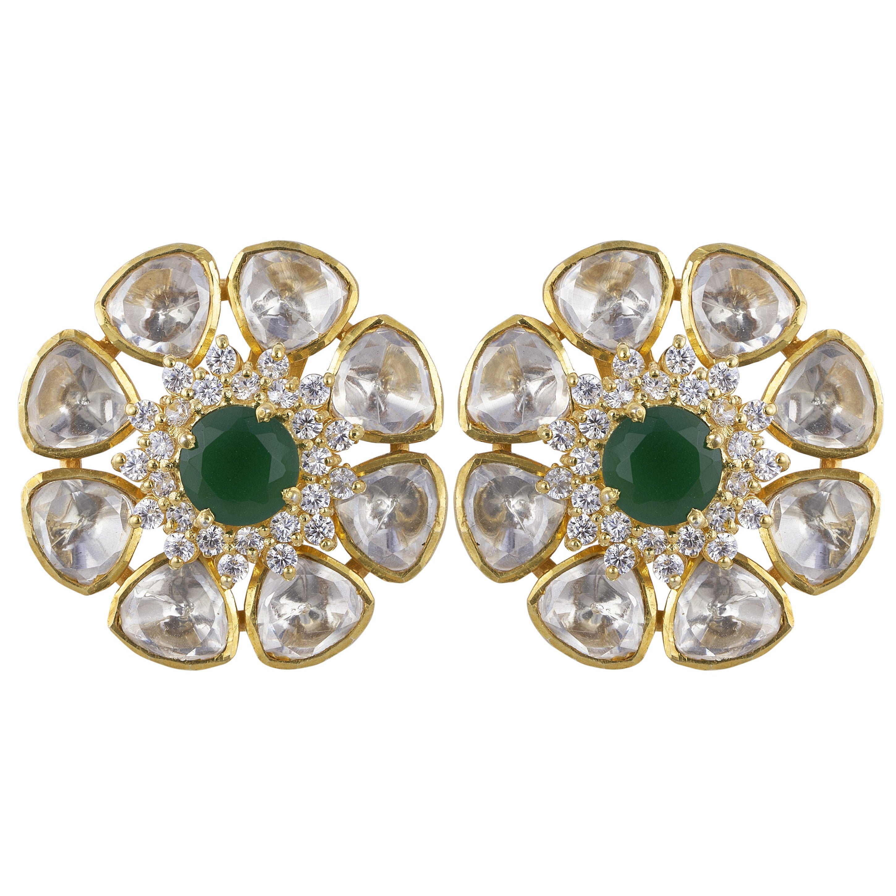 Stone Type : Moissanite Polki, synthetic green stone, cubic zirconia
