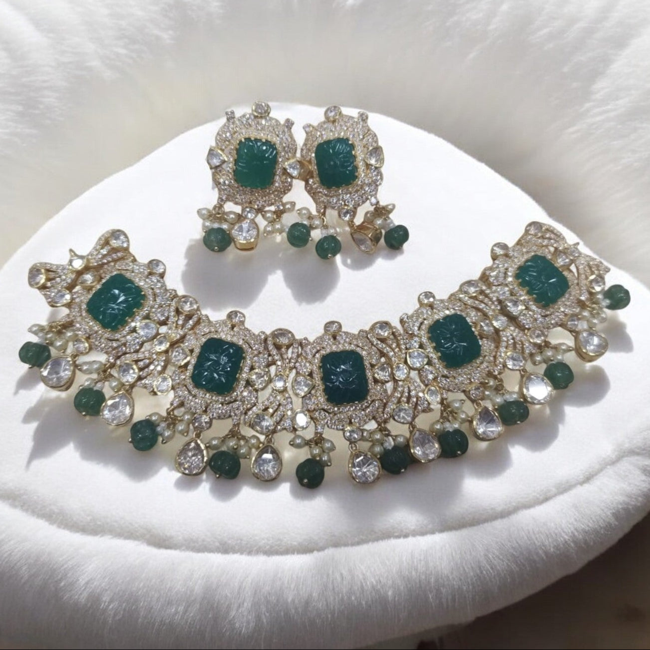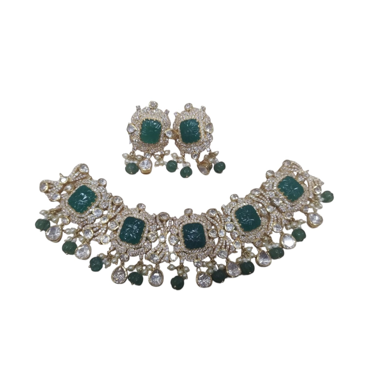 Stone Type : Moissanite Polki, Cubic Zirconia, Synthetic Green Stone, Synthetic Beads