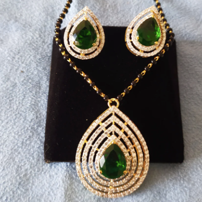 Stone Type : Cubic Zirconia, Synthetic Black Beads, Synthetic Green Stone