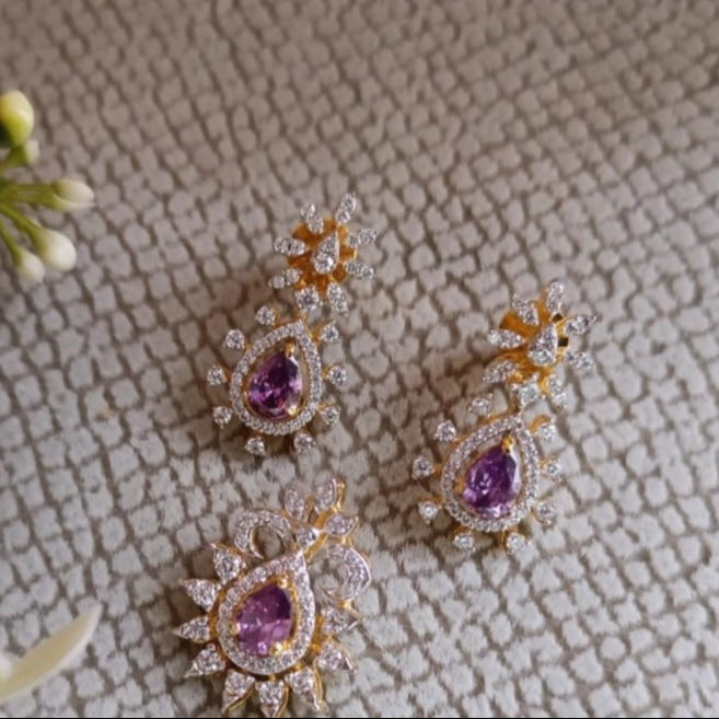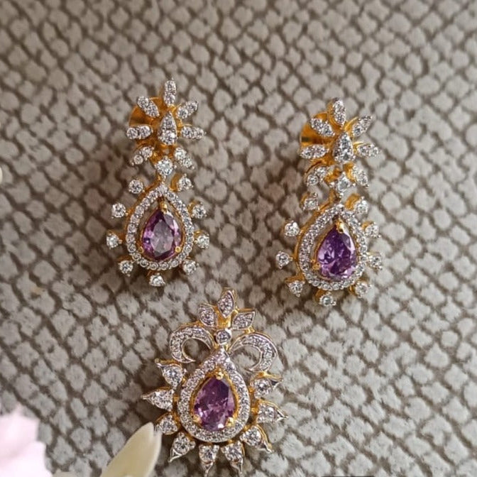 Dimensions : Pendant:2.4 x 1.8 cm ; Earrings : 2.2 x 1.3 cm