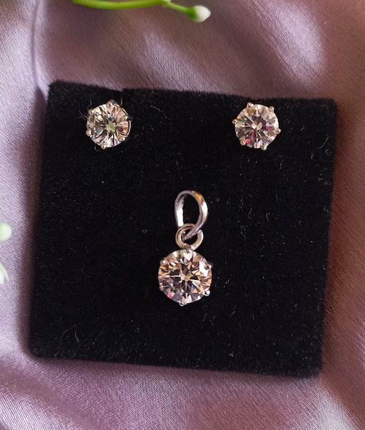 Dimensions : Pendant: 2 carat ; Earrings: 1 carat