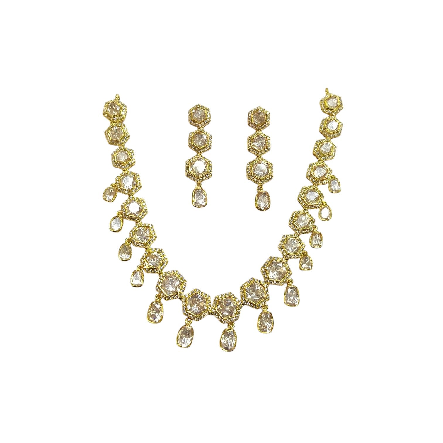 925 Silver Moissanite Polki Meira Necklace Set