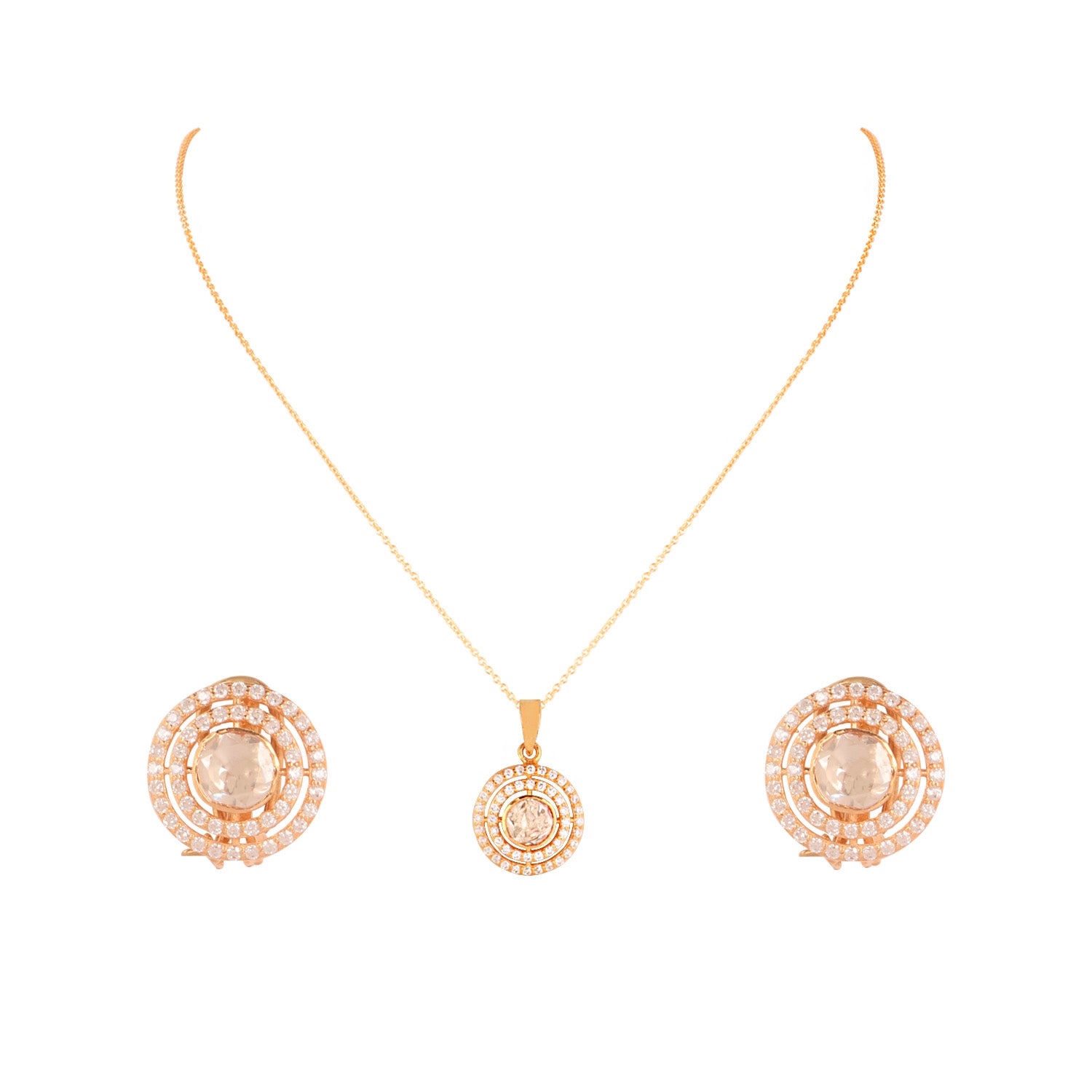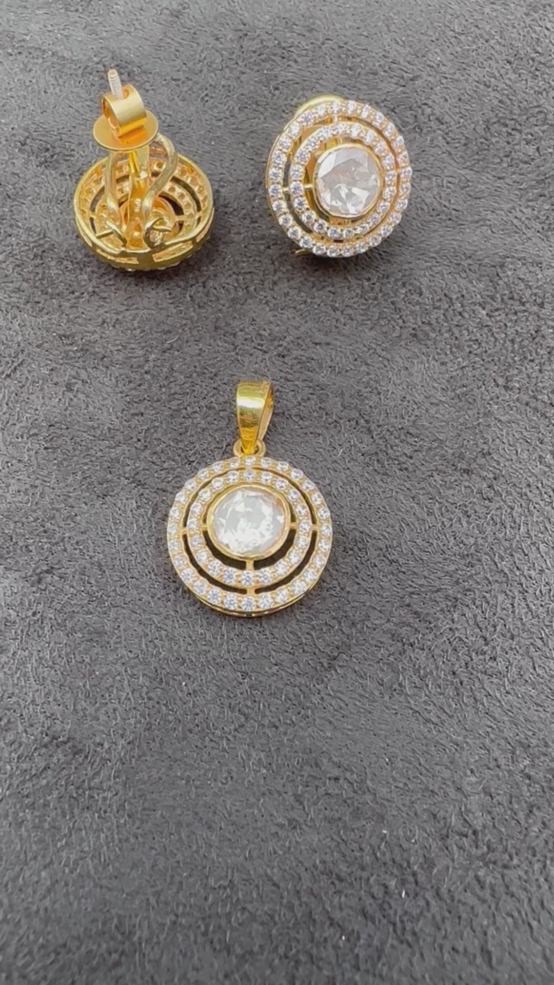 925 Silver Moissanite Polki Solitaire Pendant Set