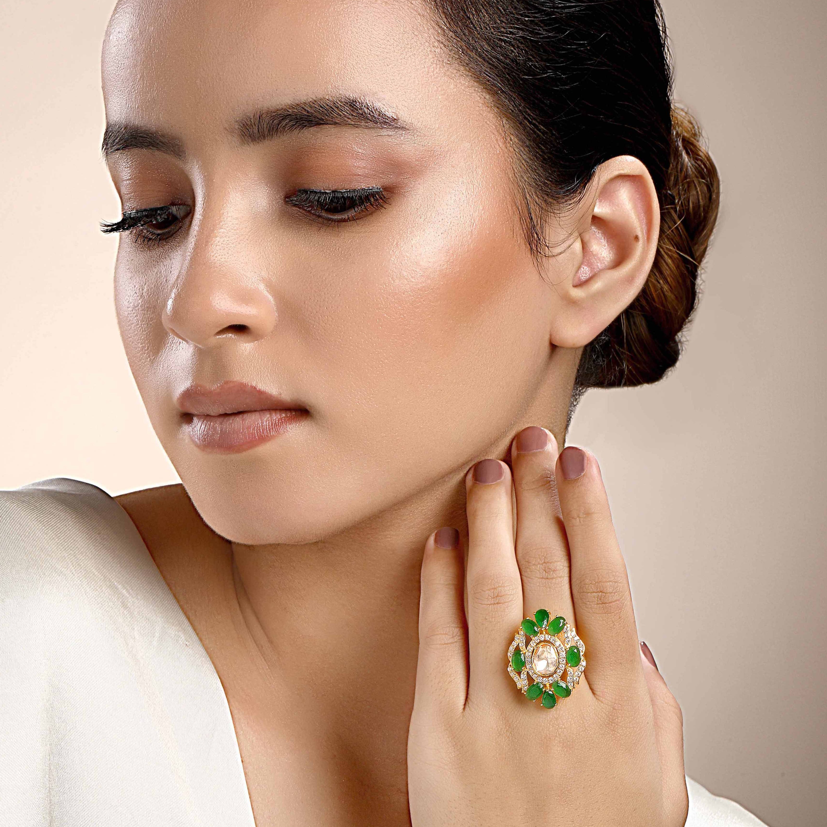 Stone Type : Moissaite Polki, Cubic Zirconia, Synthetic Green Stone