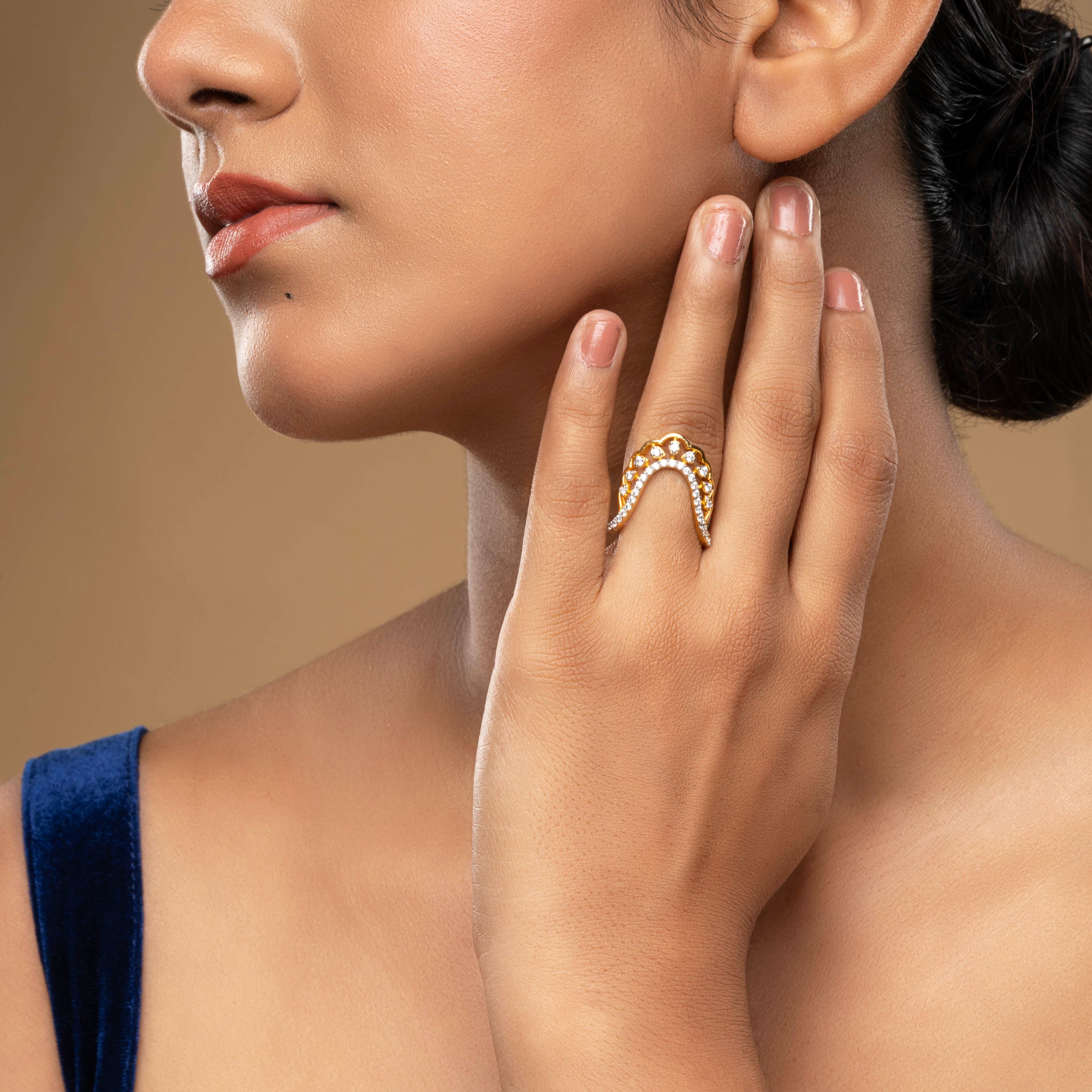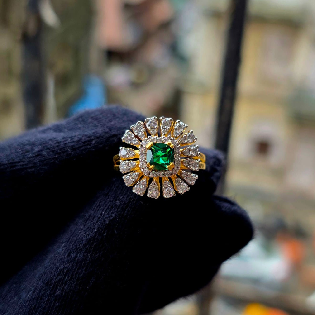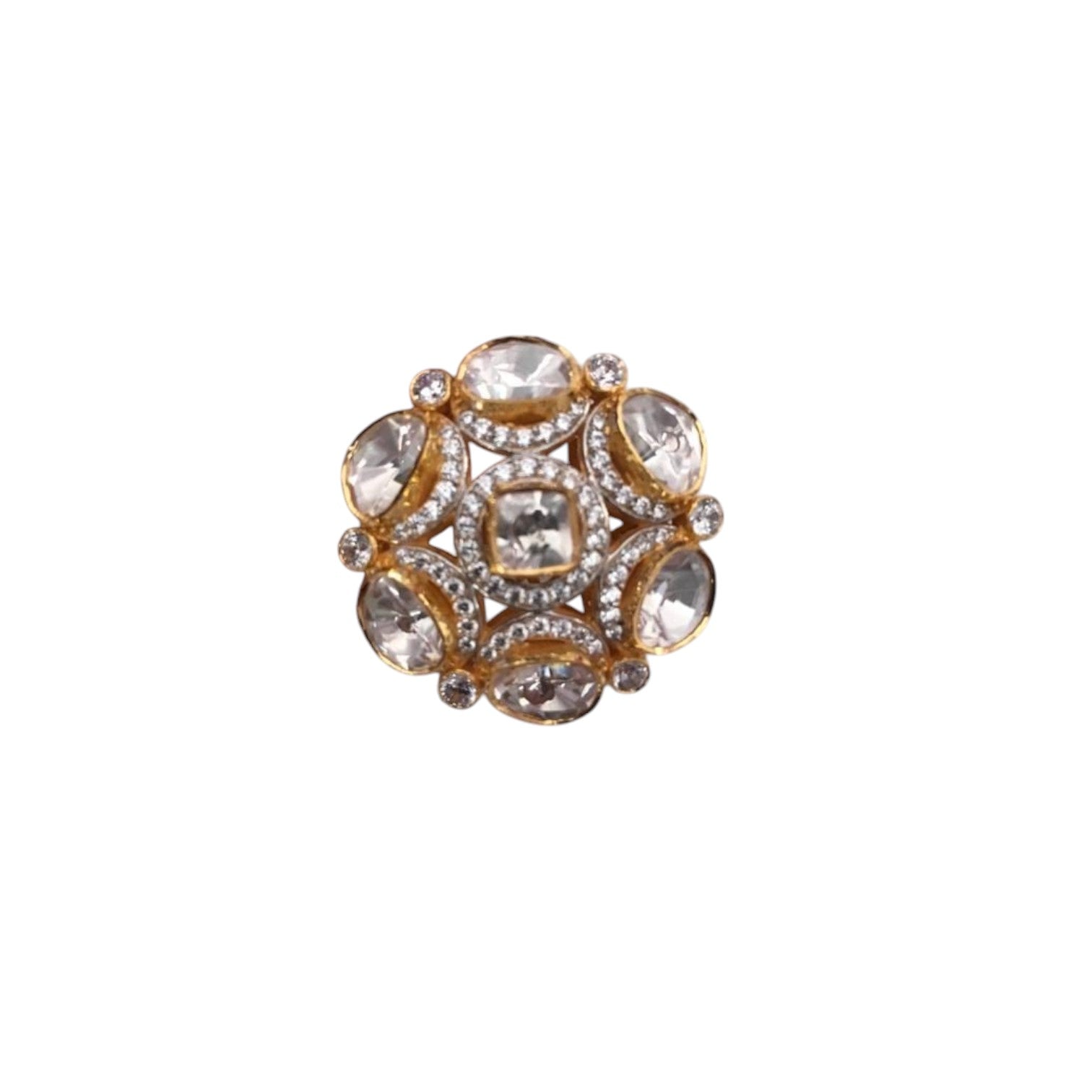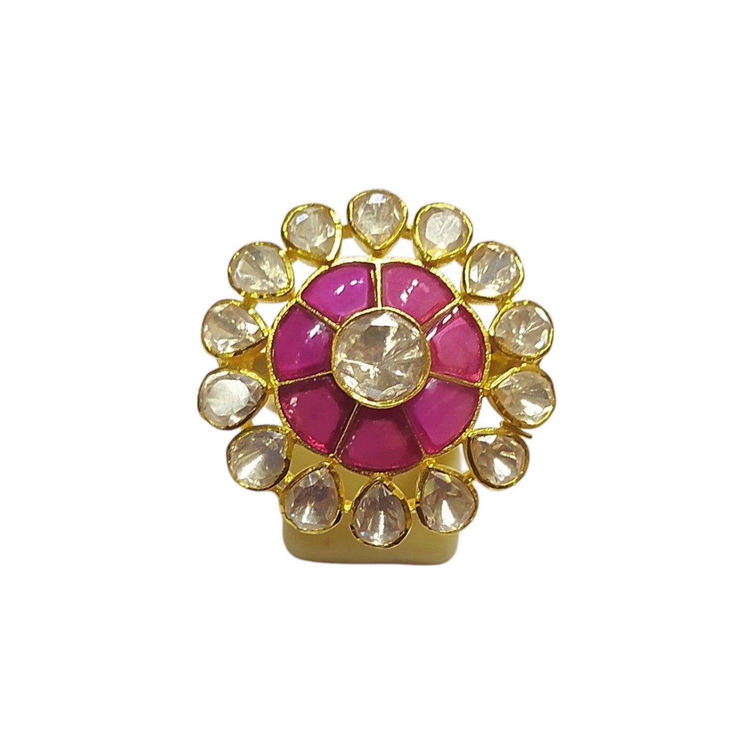 925 Silver Moissanite Polki Cosmos Pink Ring