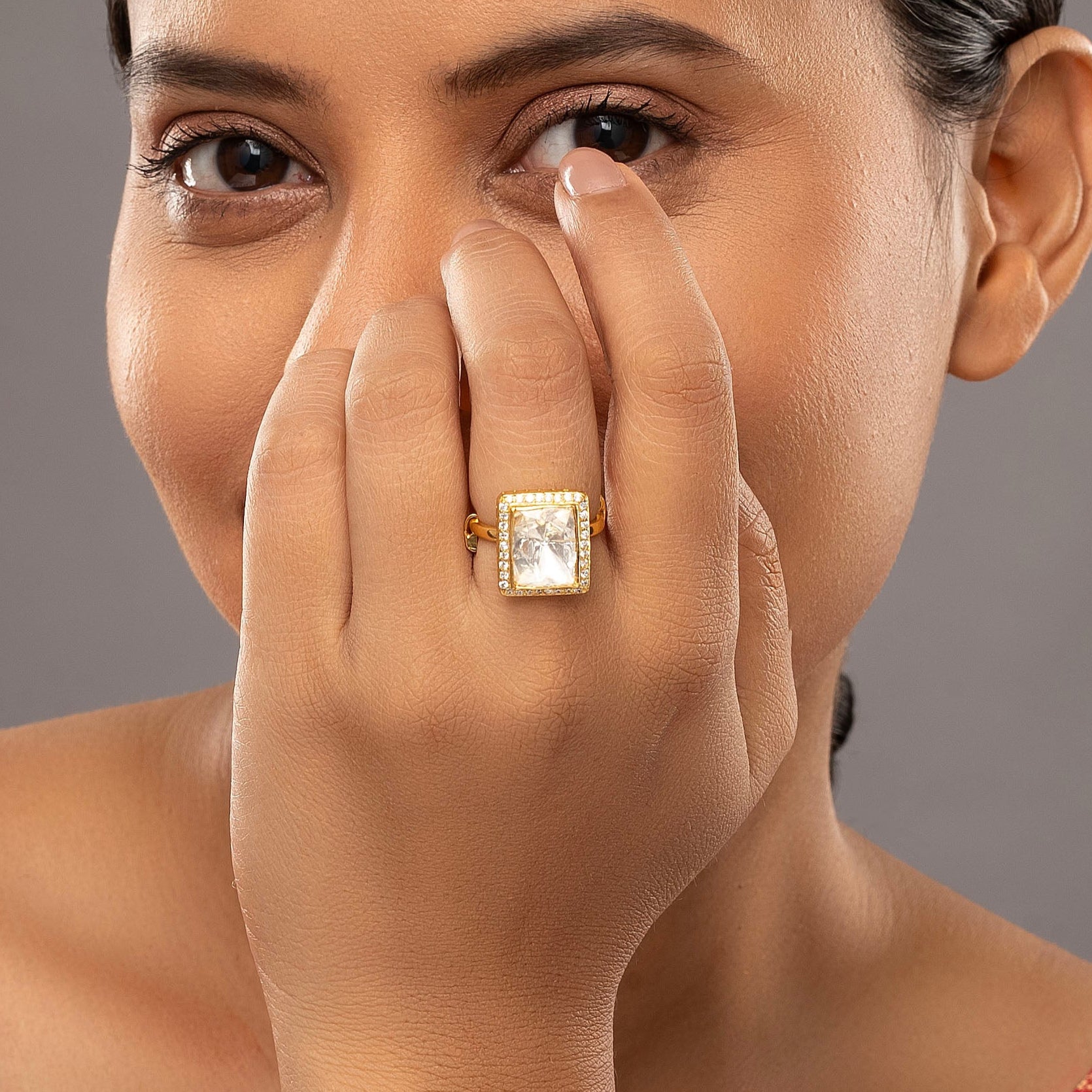 925 Silver Moissanite Polki Opulent Aura Ring