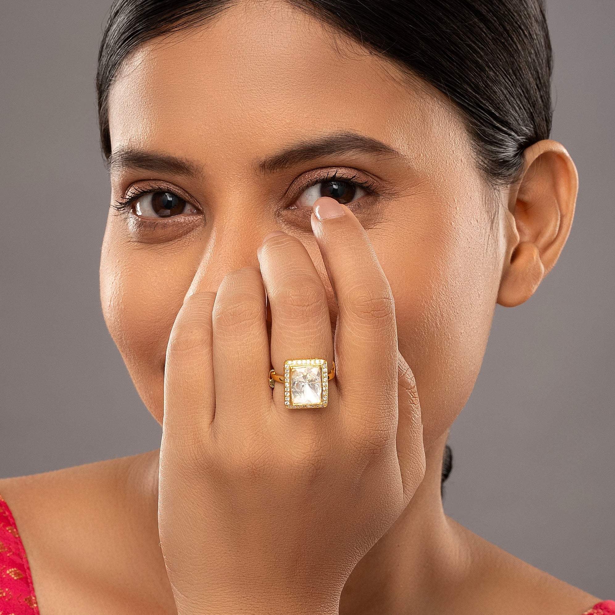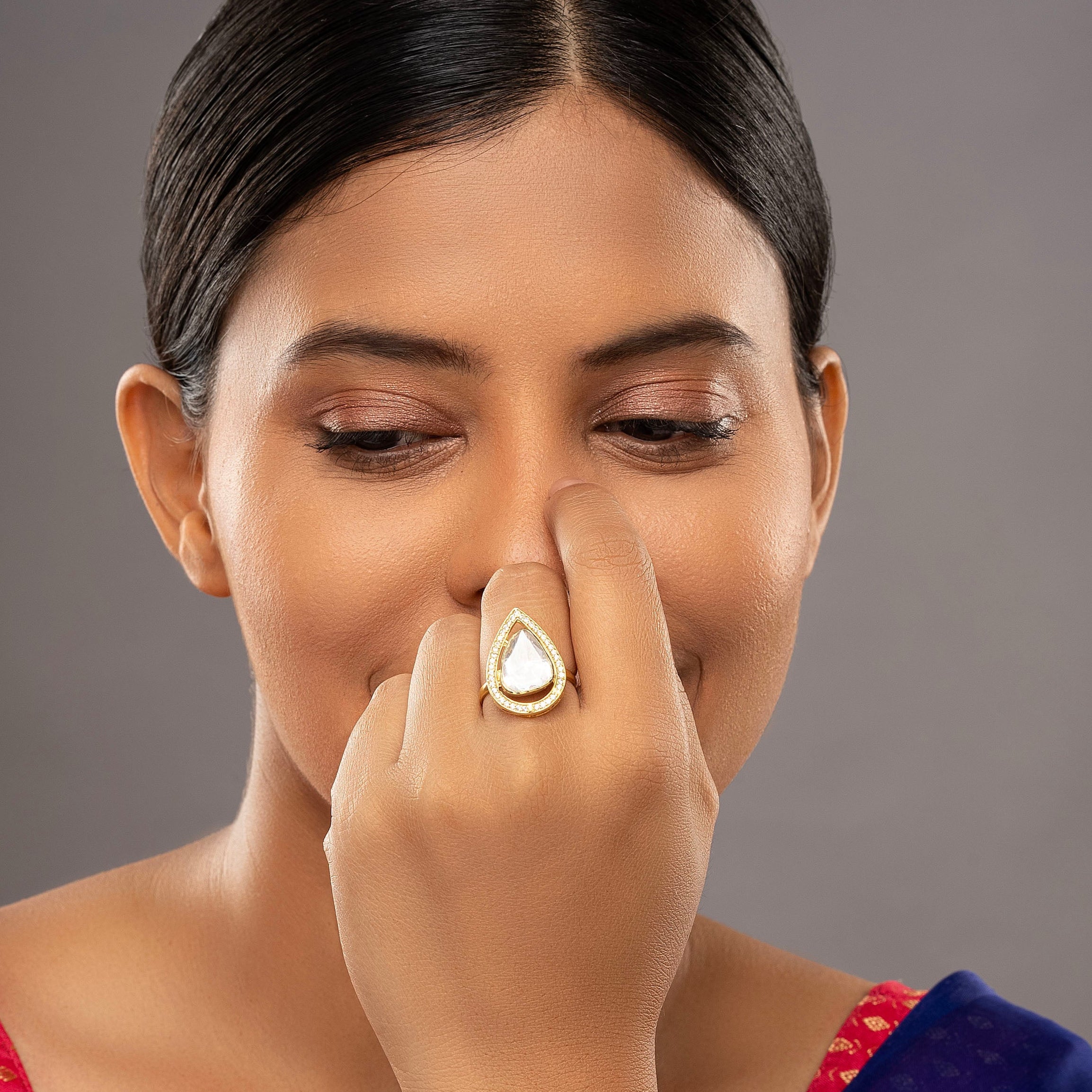 925 Silver Moissanite Polki Solika Ring