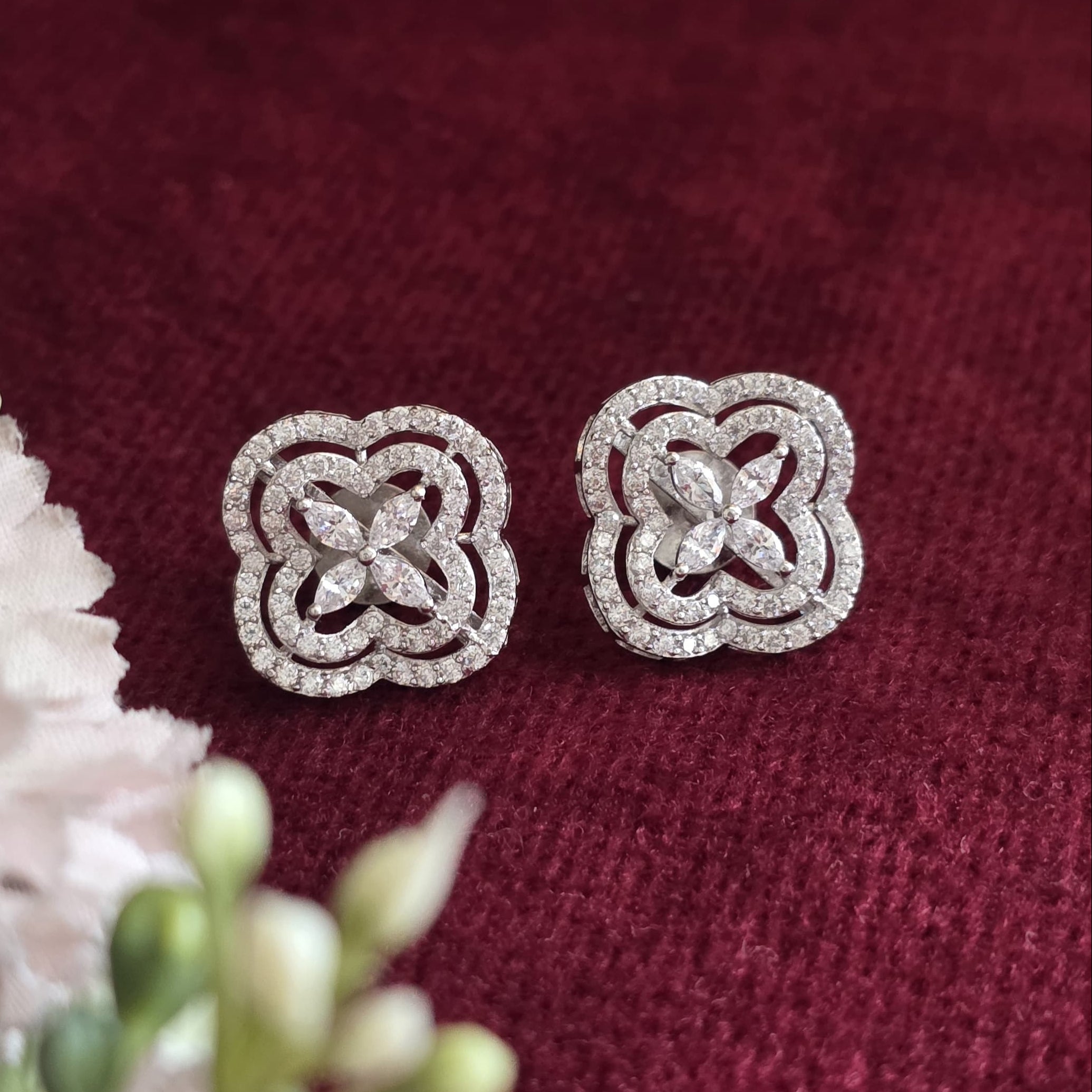 Featuring 925 silver earrings with rhodium plating; screw type: Bombay screw