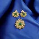 925 Silver Moissanite Polki Faux Emerald Pendant Set