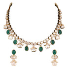 925 Silver Moissanite Polki Green Drop Necklace Set