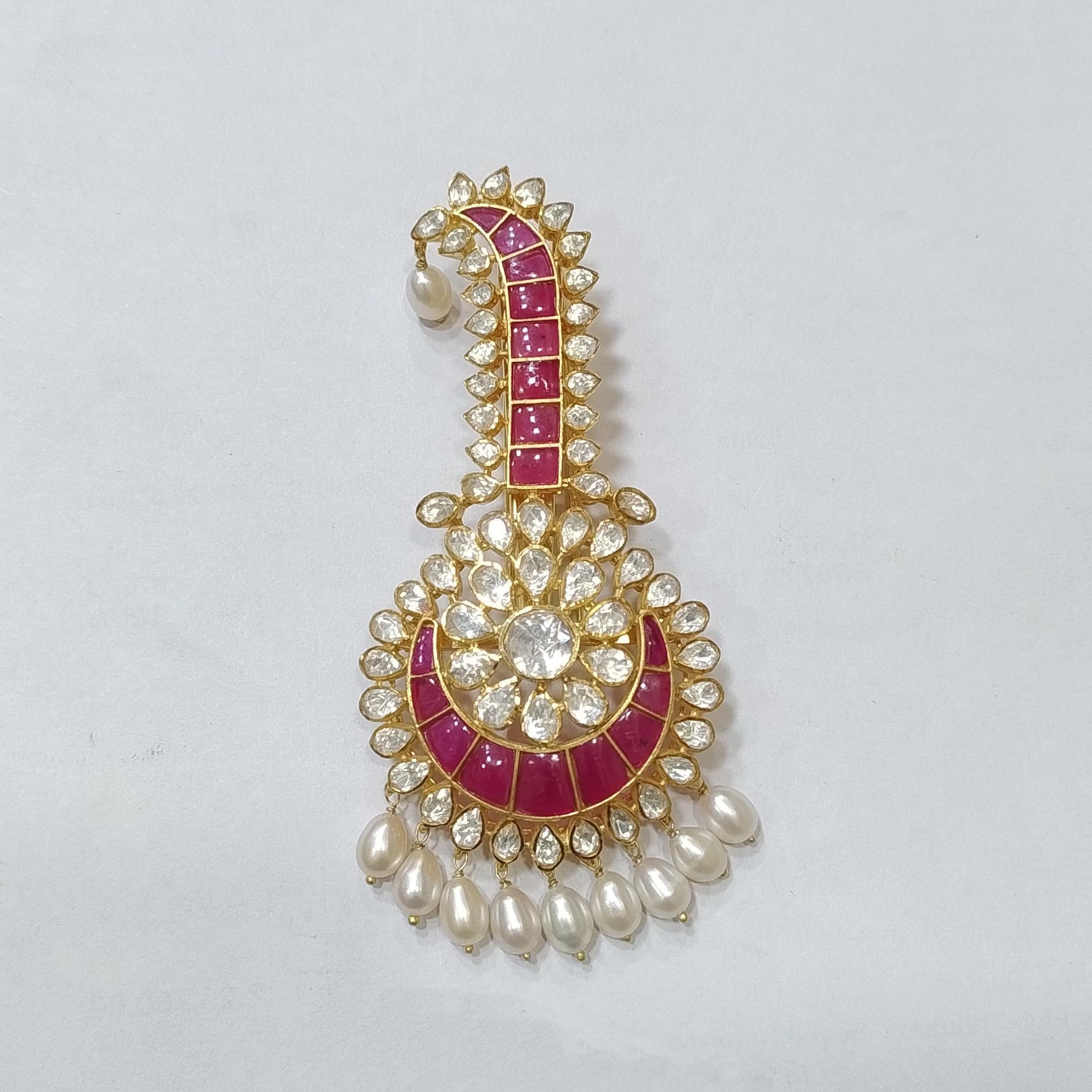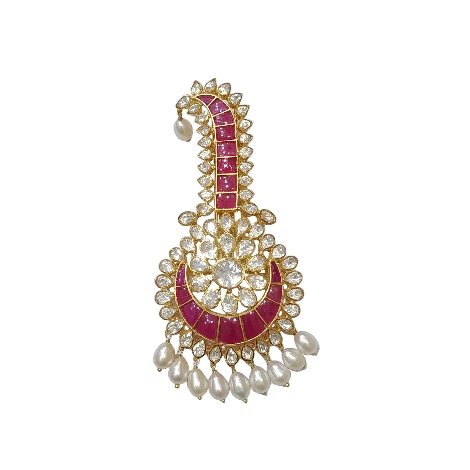 Stone Type : Moissanite polki, synthetic coloured stone & pearls