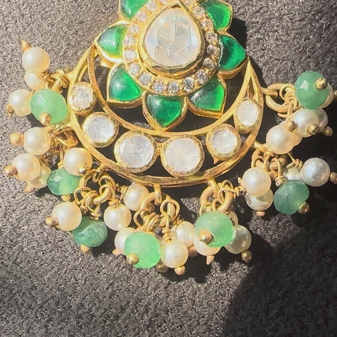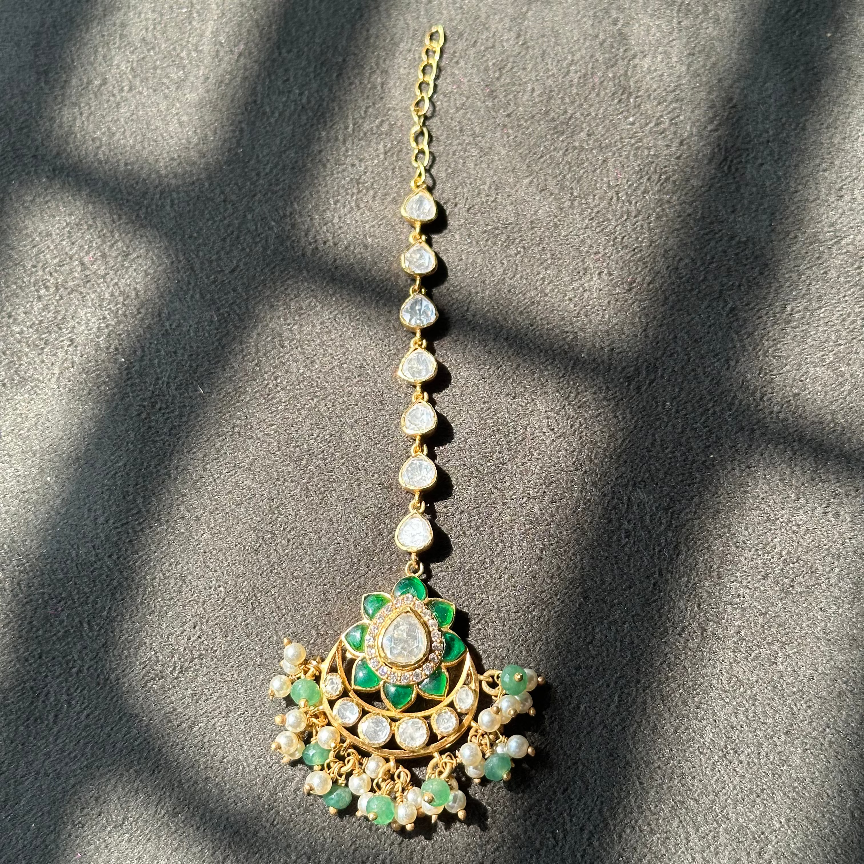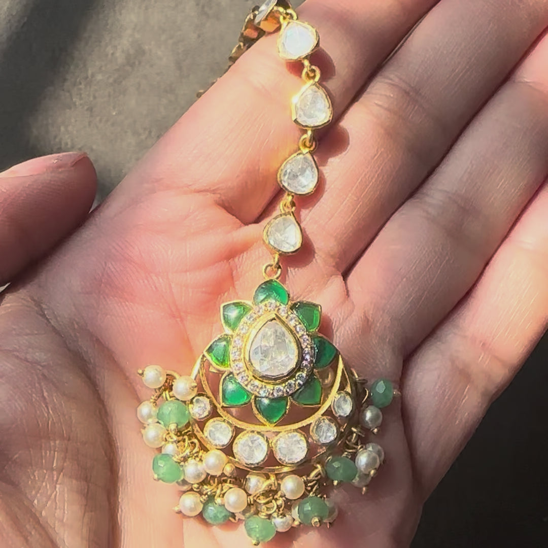 925 Silver Moissanite Polki Maangtika