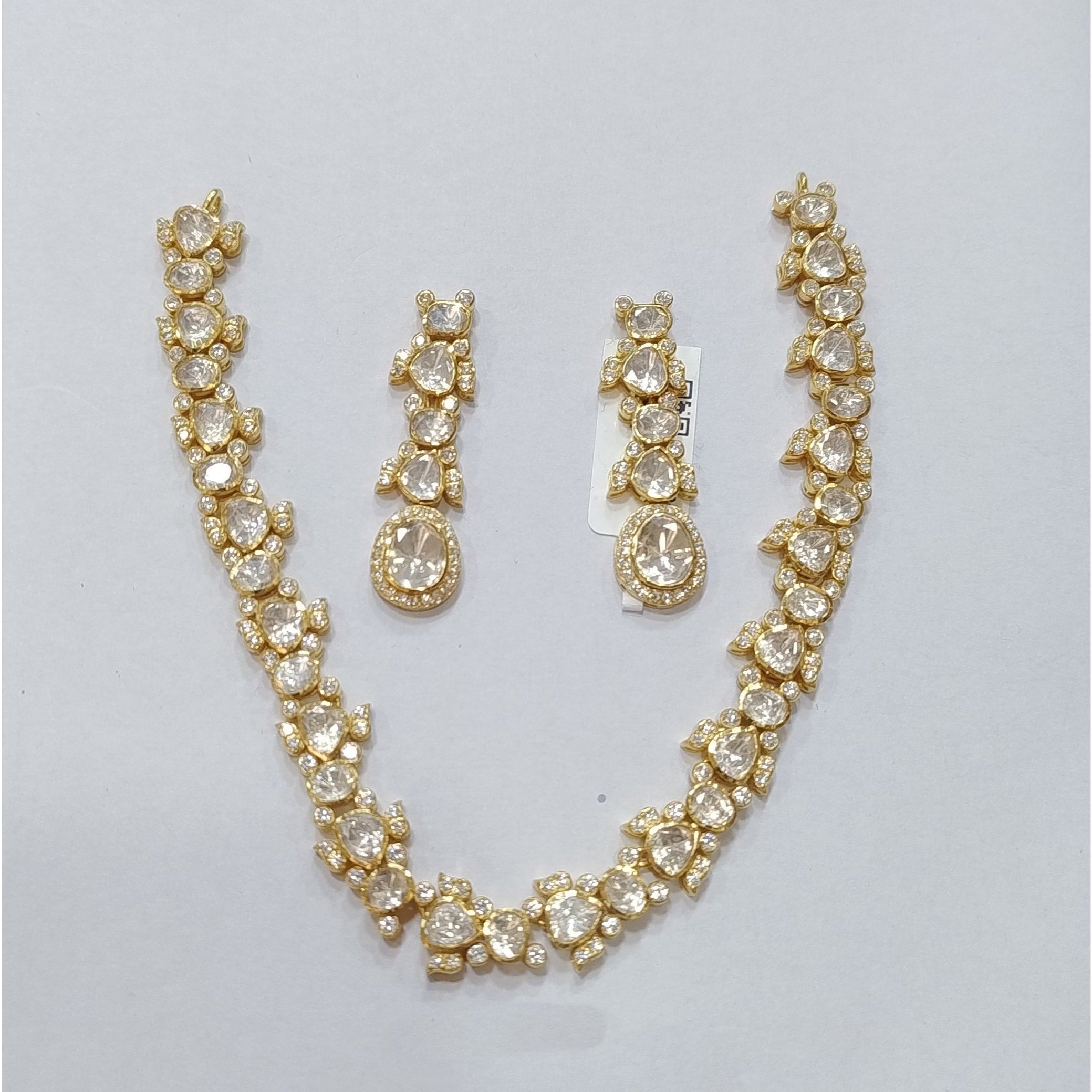 925 Silver Moissanite Polki Necklace Set