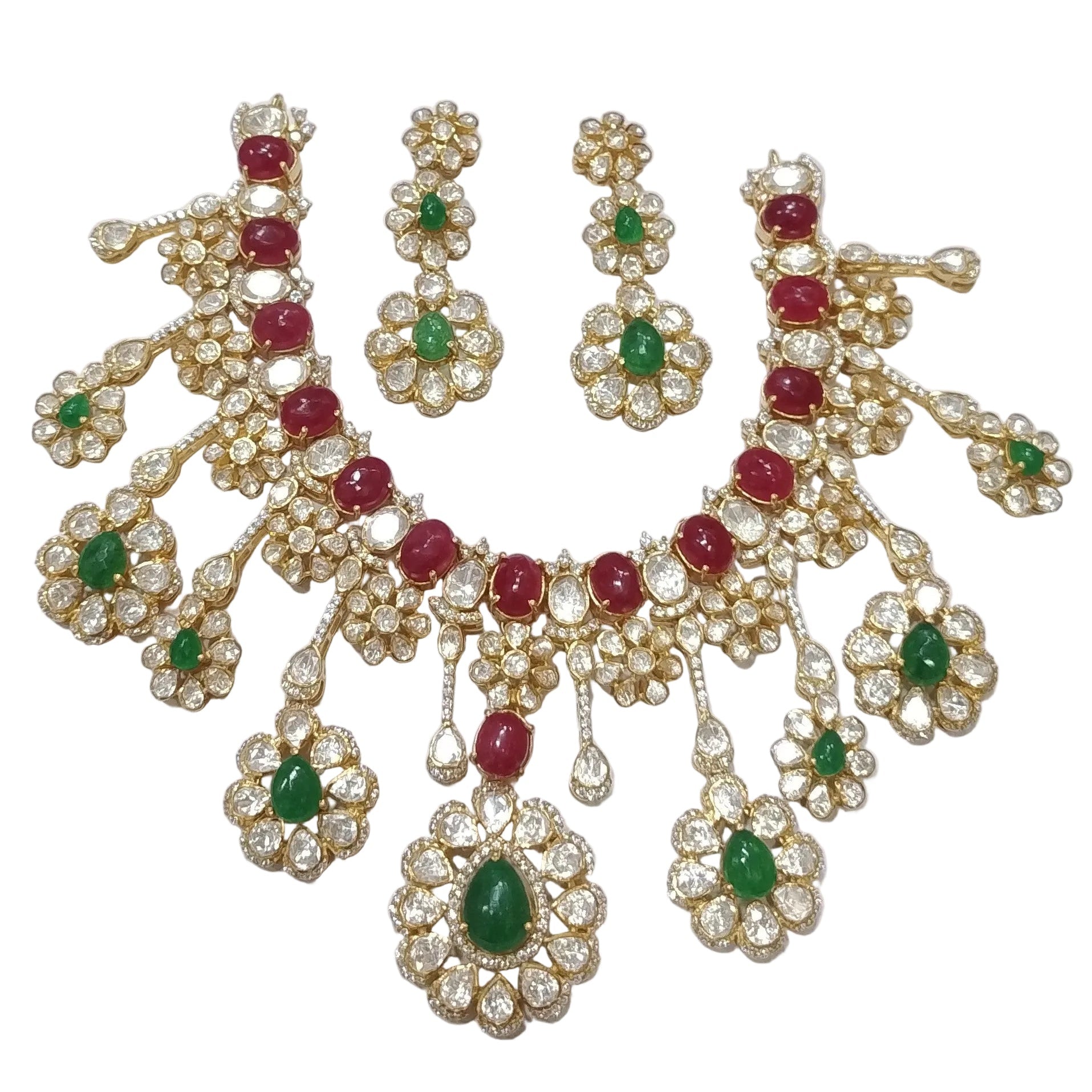 925 Silver Moissanite Polki Necklace Set
