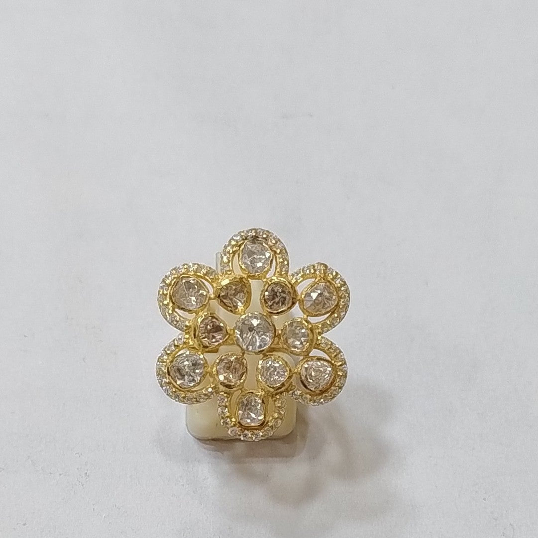 925 Silver Moissanite Polki Ring