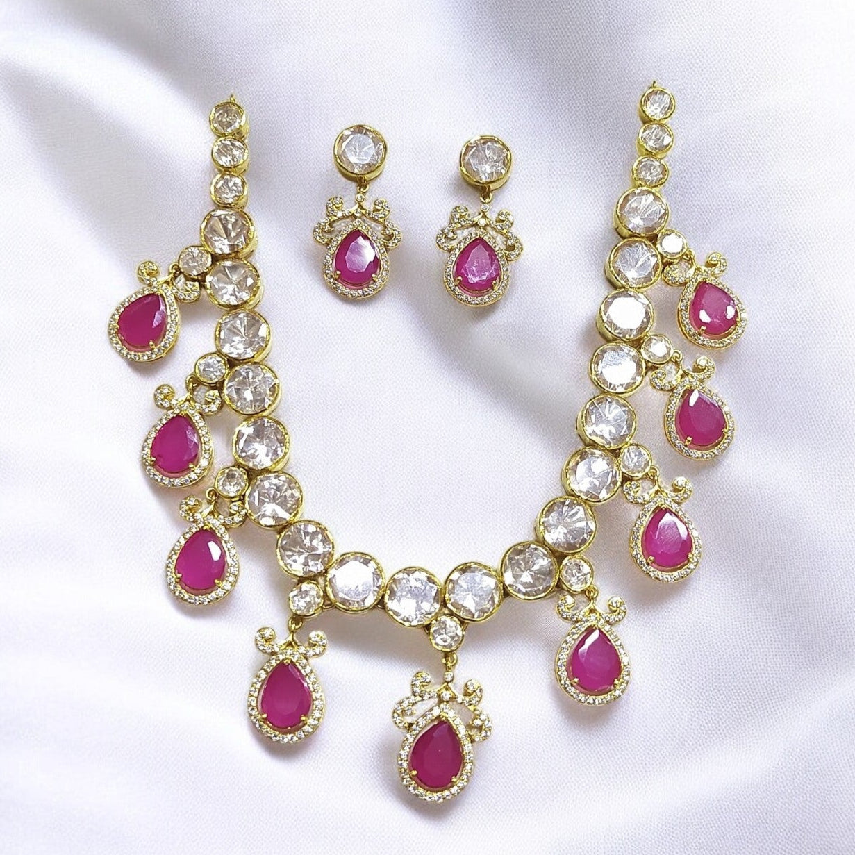 925 Silver Moissanite Polki Ruby Drop Necklace