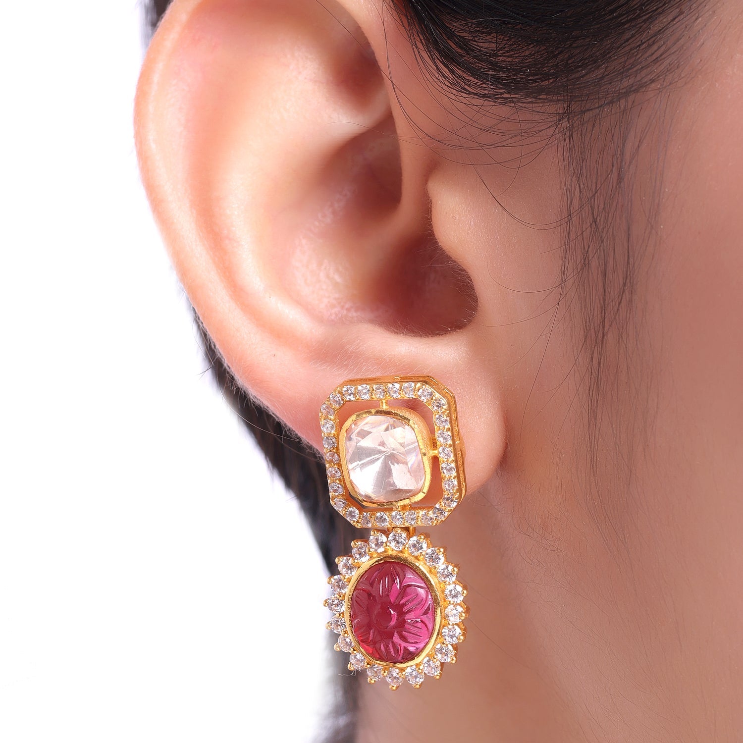 Stone Type : Moissanite polki, cubic zirconia, synthetic coloured stone