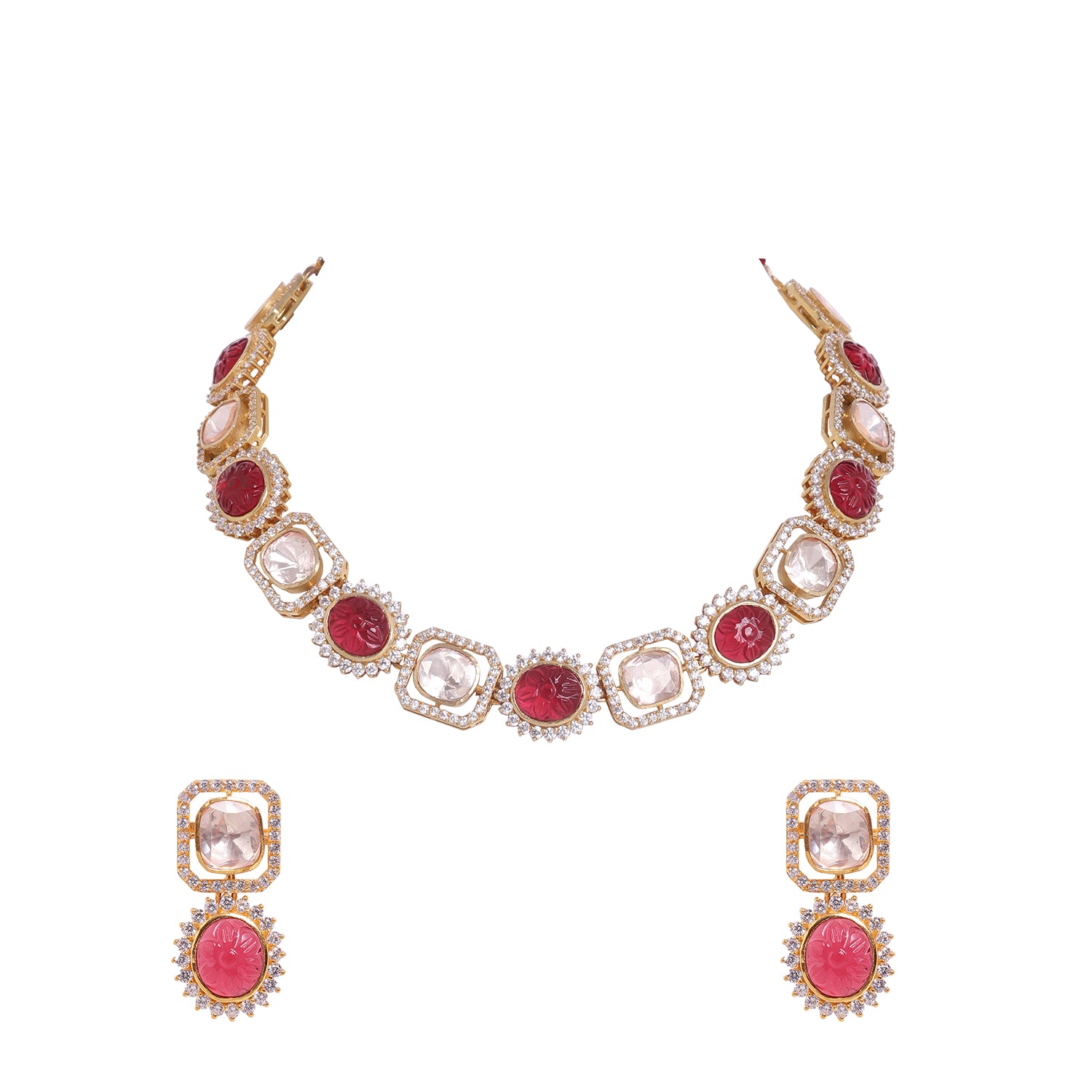 925 Silver Moissanite Polki Ruby Single Line Necklace