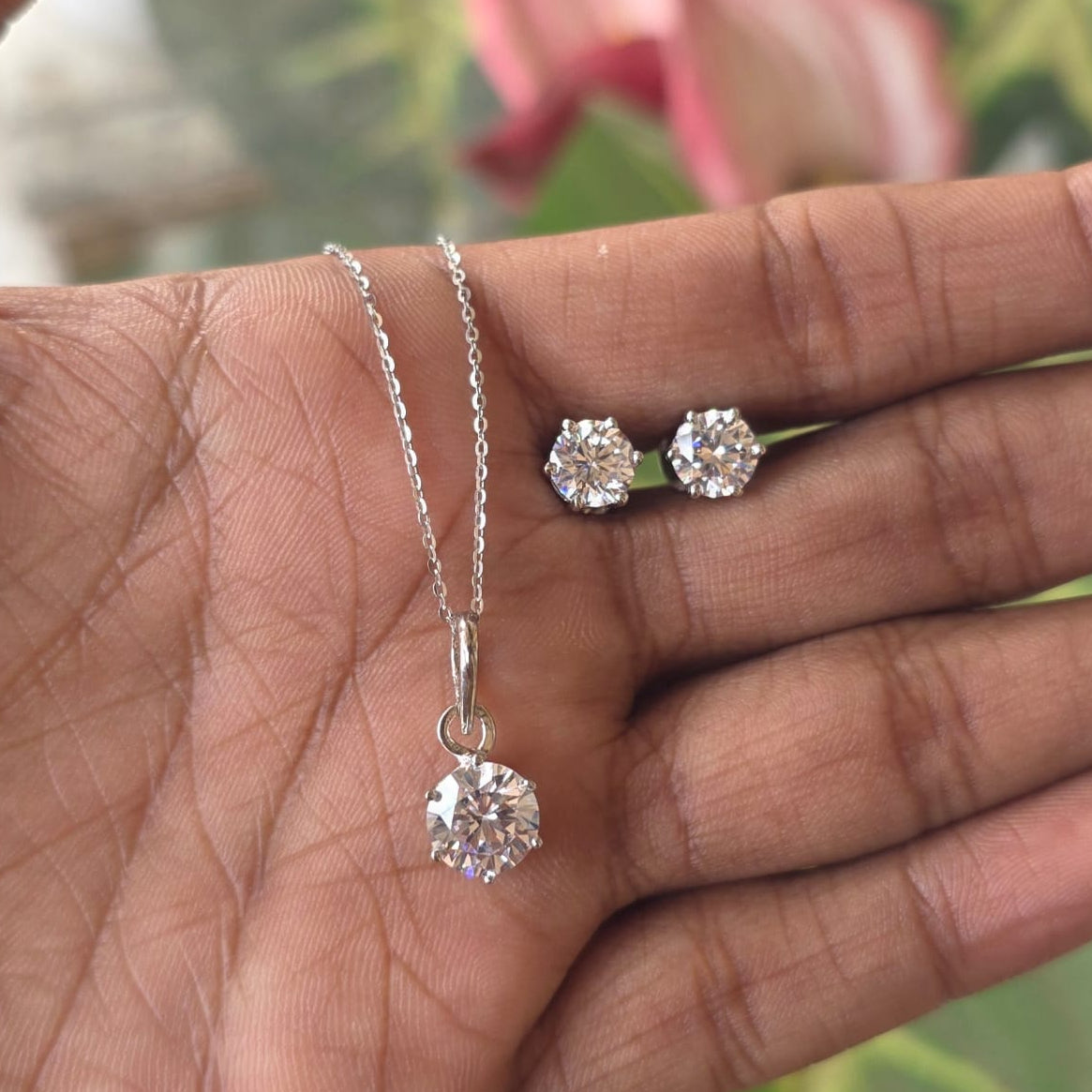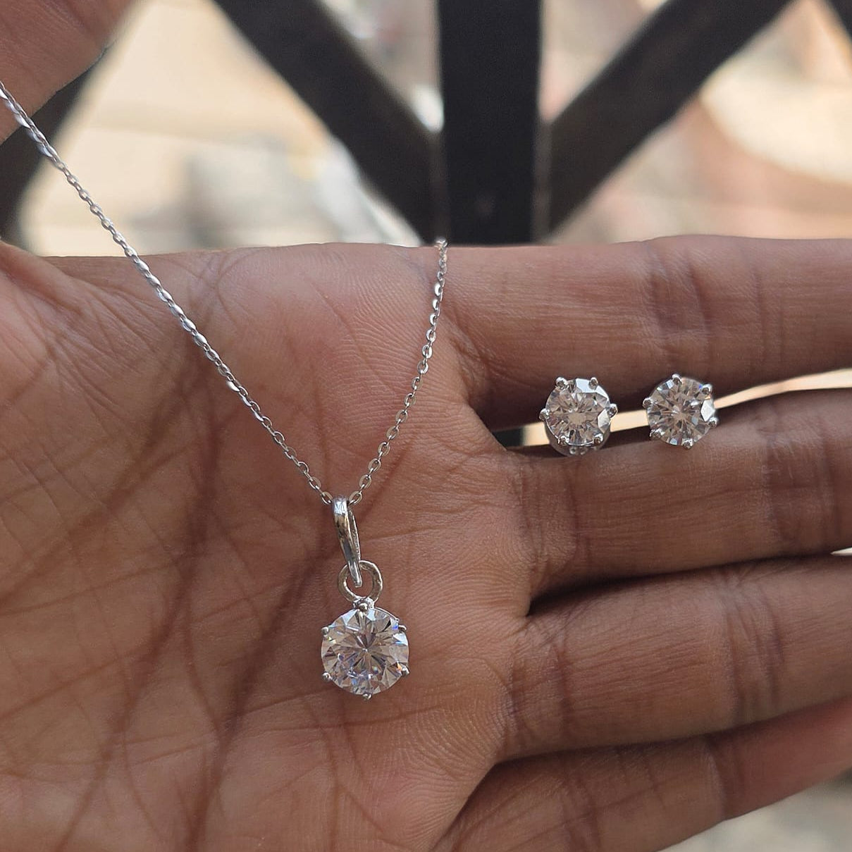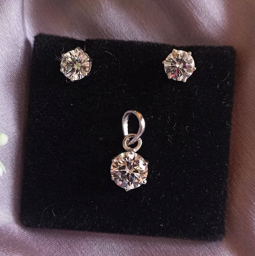 Dimensions : Pendant: 2 carat ; Earrings: 1 carat