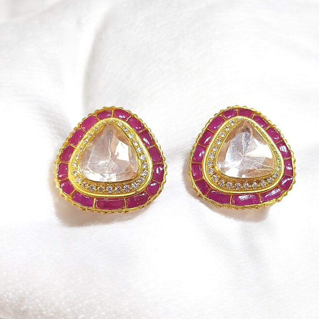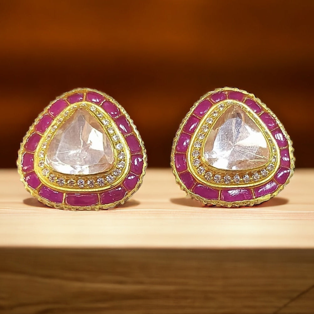 925 Silver Moissanite Polki Sika Earrings
